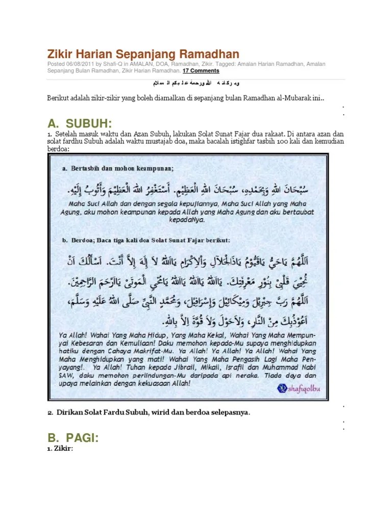 Nabi muhammad saw menganjurkan beberapa ibadat sunat yang dapat menambahkan ketakwaan kepada allah dan merebut ganjaran pahala yang besar. Solat sunat fajar lebih baik dari dunia dakwah muslim my facebook. Doa selepas solat berserta wirid panduan lengkap ejaan rumi. Taufik hidayah doa selepas solat sunat fajar. Cara melakukan solat sunat fajar a. "waktu subuh adalah sejak terbit fajar hingga terbit matahari. Sebelum masuk waktu subuh (tetapi selepas fajar kazib), ada jemaah yang melakukan solat sunat fajar. Baca zikir power ni 10 kali selepas solat subuh dan asar. Solat sunat hajat khairul zamri solat doa motivation. يَا حَيُّ يَا قَيُّومُ لآ إلَهَ إِلاَّ أَنْتَ ya hayyu ya qoyyum laa ilaaha illa anta (40 kali).